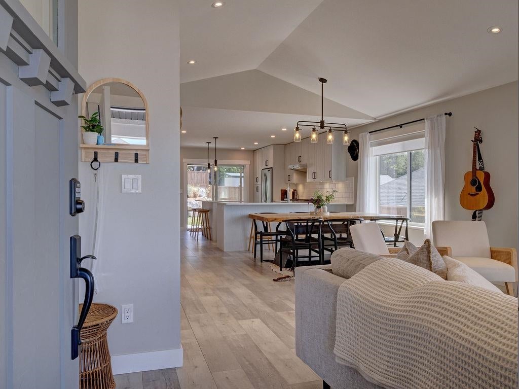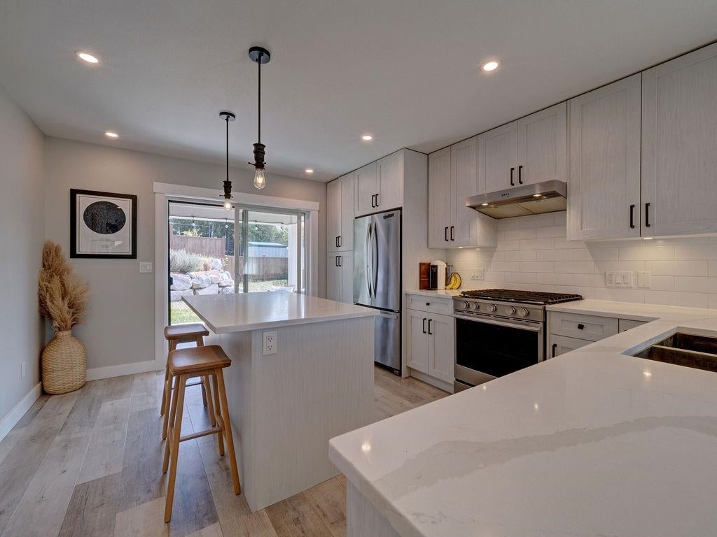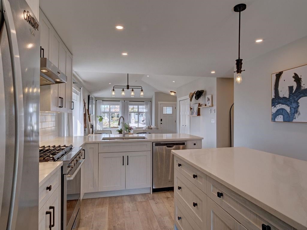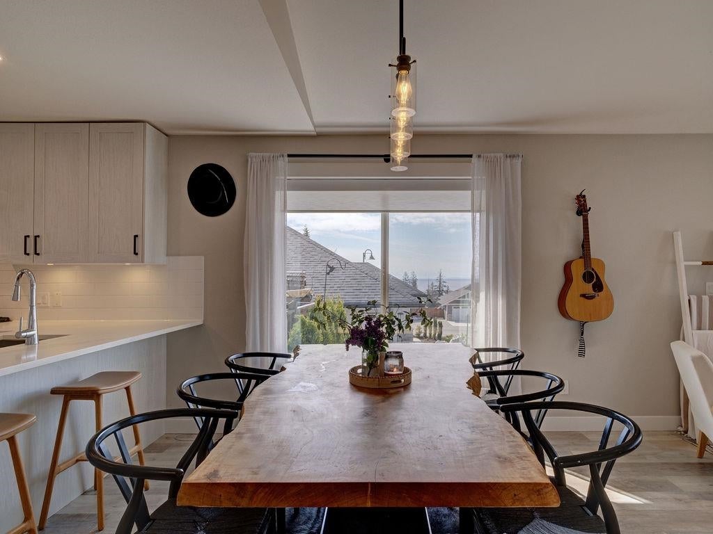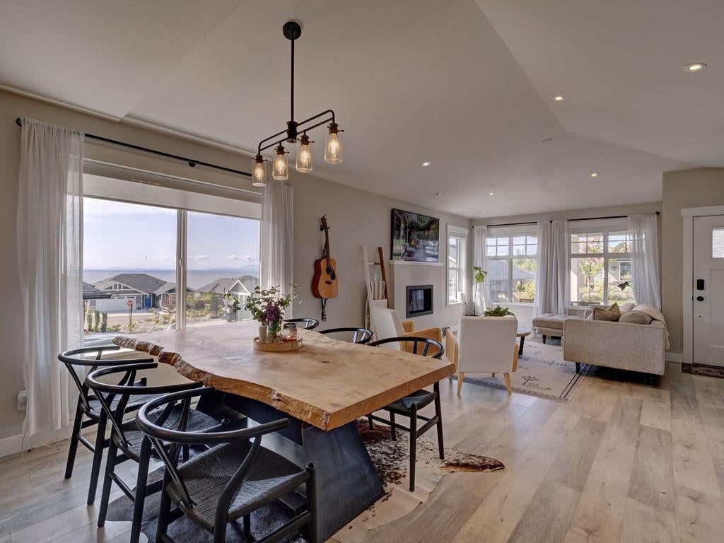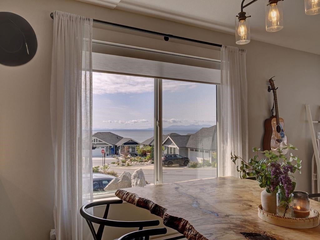 Gorgeous rancher perched above rock retaining wall in Silverstone Heights. This almost new, rancher has wonderful views of the Trail Islands and into the Georgia Strait. Spacious open floor plan showcases 9 ft ceilings and large picture windows taking in the SW views while bringing in plenty of bright light throughout the day. Custom remote blinds in the main living area with blackout blinds in each of the bedrooms. Enjoy entertaining with covered patio off the kitchen & fenced yard. Kitchen boasts Quartz countertops, gas range and oversized island. Luxurious master bedroom suite has large walk-in closet and Spa-like 5 pc ensuite with oversized walk-in shower and radiant heated floors. You will love this welcoming and safe neighborhood. Home warranty remains. Shows 10/10