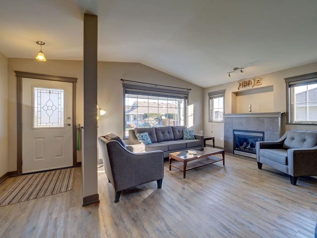 Exceptional value in this three bedroom rancher located in the popular Tyler Heights neighborhood. Sunny West facing backyard is fully fenced. Newer vinyl plank flooring throughout and cozy gas fireplace in the living room. Dining room can easily be switched back in to the great room to allow for a nice sitting area off the kitchen and patio. Roof replaced in 2018. Extra parking allows for 3 cars in the driveway plus double garage. This is a safe and easy walking community close to the bus stop, trails and in the highly sought after West Sechelt Elementary School catchment area.