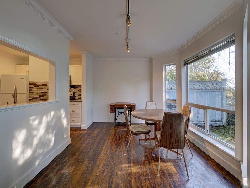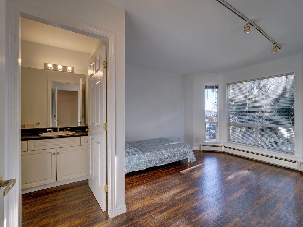 Step inside this partly updated level entry townhome and enjoy a layout designed for both comfort and convenience. Wood flooring runs throughout both levels, with soft carpet reserved only for the staircase. Upstairs, both bedrooms feature private ensuites, ideal for hosting guests with ease. The cozy gas fireplace anchors the main living space and can be enjoyed from the kitchen, dining area, and living room. The modernized kitchen and crown molding throughout the main floor add touch of class. Sliding glass doors open to a spacious south facing backyard and patio, an ideal spot for morning coffee. Recently painted and move in ready. Double garage. Walkable location close to bus route, shopping, marina, recreation center & a wonderful selection of culinary options.