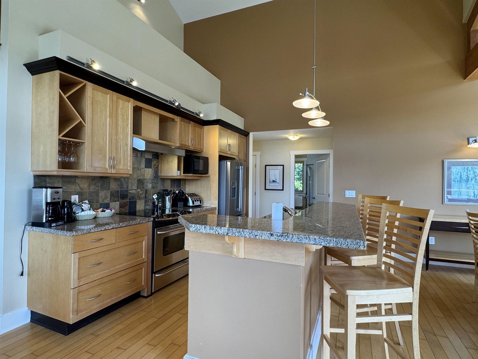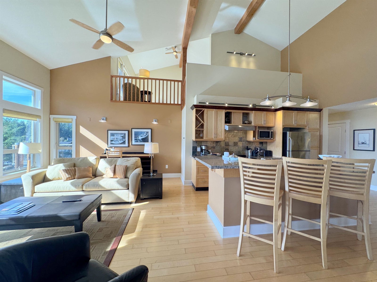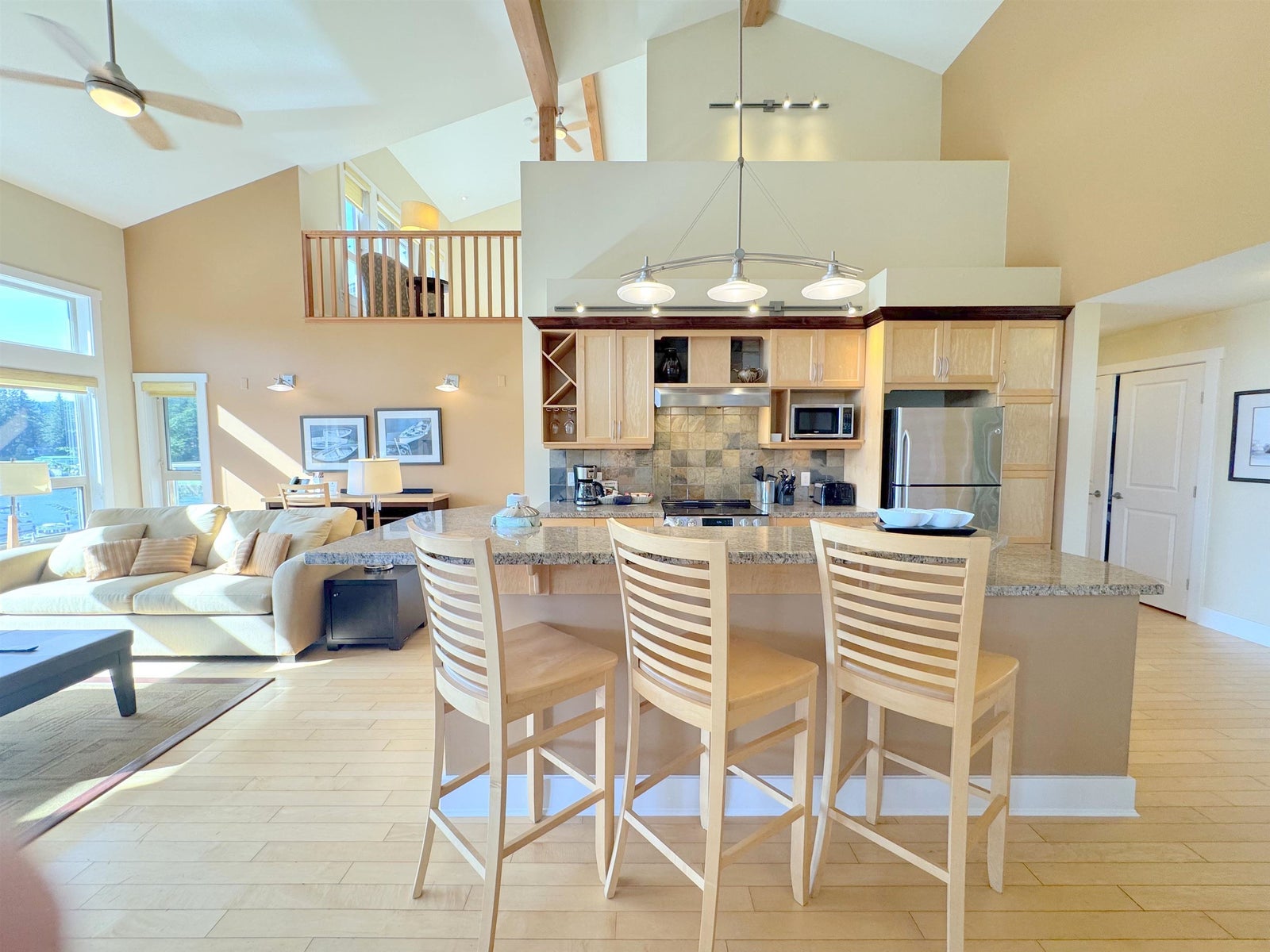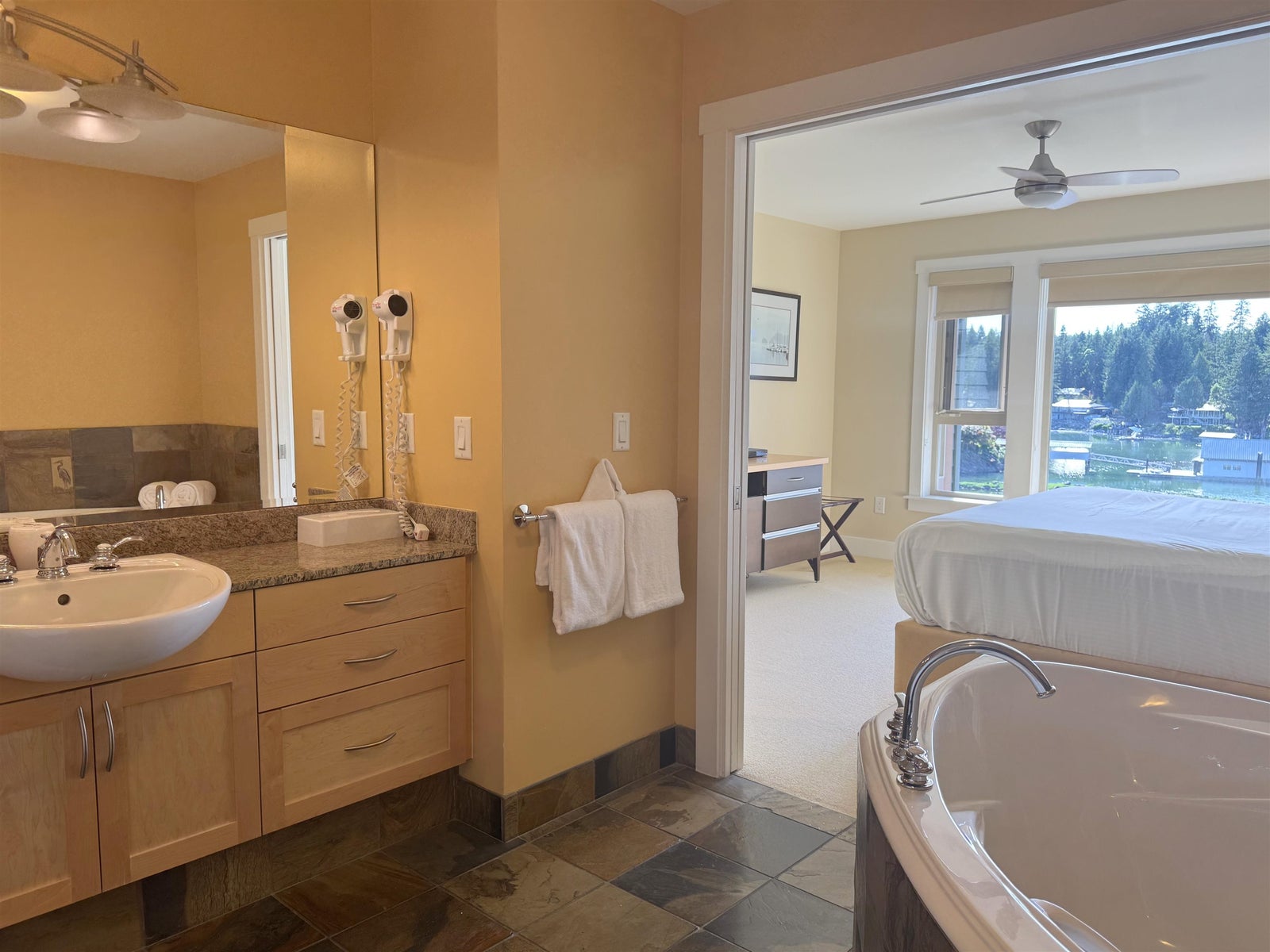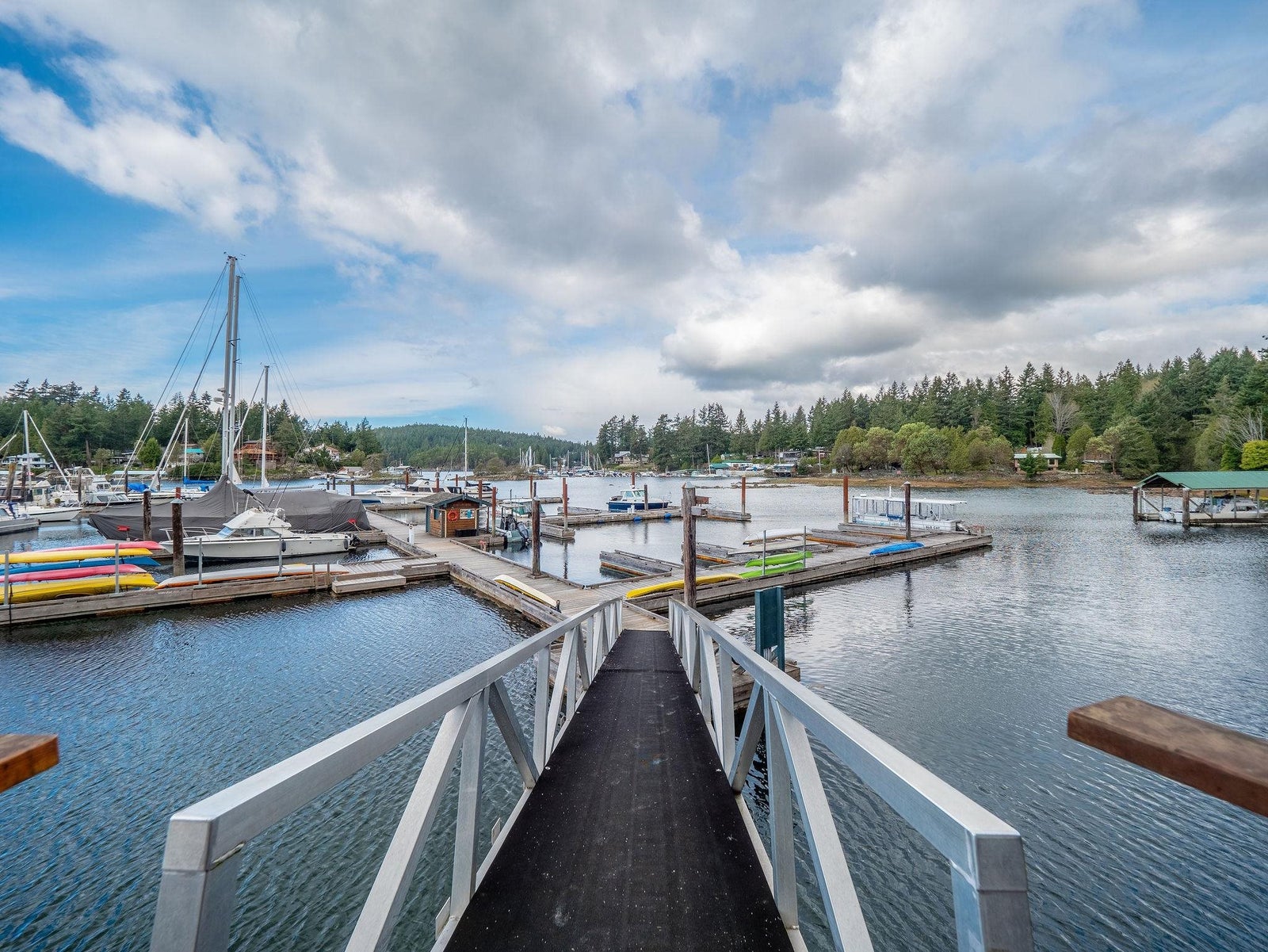 Enjoy well deserved downtime in your pivate villa at the Painted Boat Resort & Spa. This waterfront development sits on over 5 acres of beautifully maintained grounds including an outdoor infinity pool, hot tub and exercise facility overlooking the active bay and marina. This wheelchair friendly villa is uniquely located tucked away at the end of the property overlooking the lagoon and an awesome view of Pender Harbour * Upper floor & corner boasting 2 bdrms on the main level and upper loft overlooking wood beams and vaulted ceilings. First class restaurant on site and a short stroll to quaint Madeira Park for supplies. Invest in YOUR LIFESTYLE and recoup some expenses through rental pool. Fees incl ALL COST OF OWNERSHIP including taxes, insurance, utilities & all furnishings & equipment.